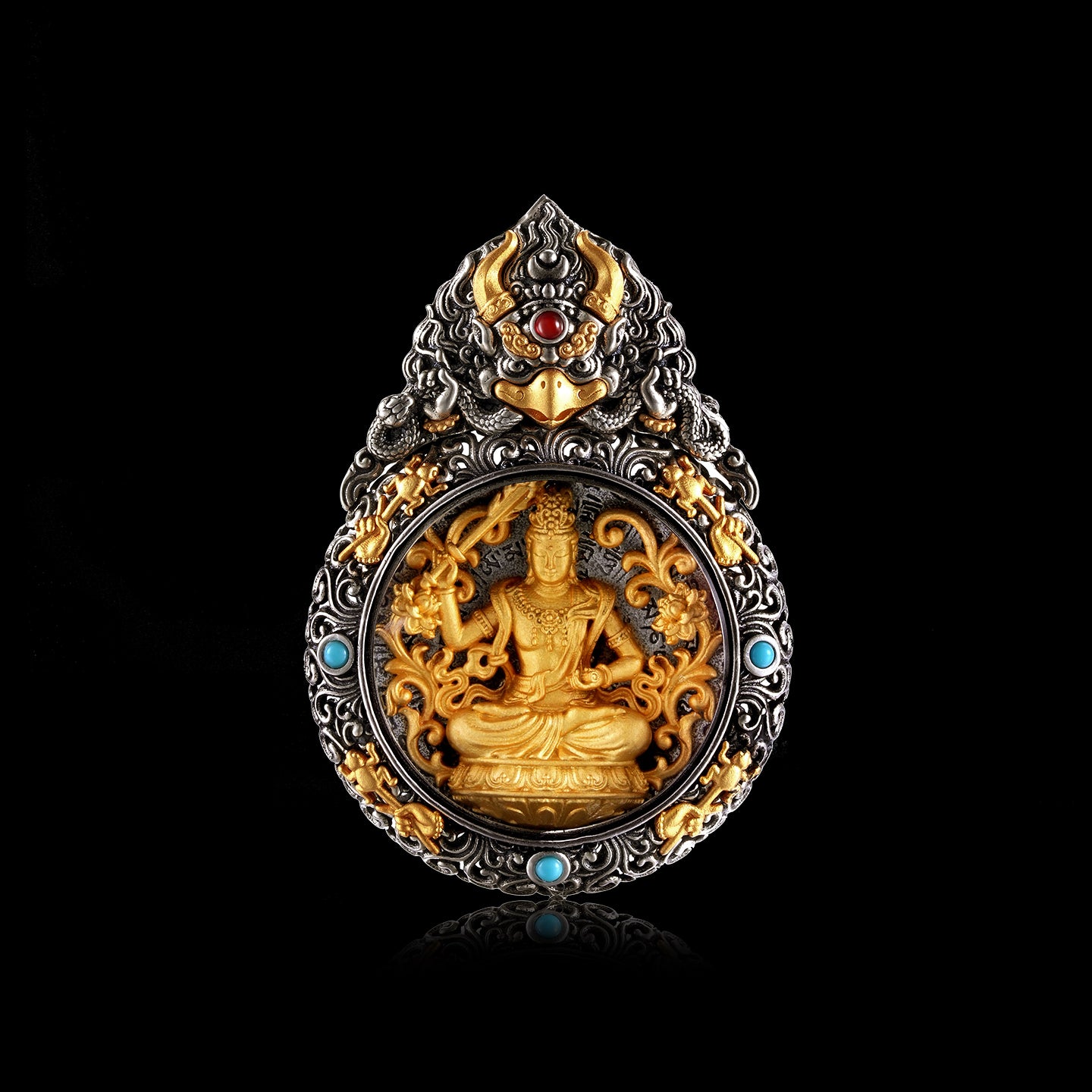 Manjushri Bodhisattva, a symbol of wisdom and eloquence in Buddhism, is reverently known as "Great Wisdom Manjushri." Legend has it that he severs afflictions with his sword of wisdom, illuminating the path of learning and liberation for all beings. He corresponds to the Chinese zodiac sign of the Rabbit. The Garuda, depicted atop the Ga'u box, is a mythical bird in Tibetan culture that protects the Dharma and wards off evil. Legend has it that the Garuda's wingspan covers the sky, safeguarding faith with unwavering strength. The fusion of these two elements, combined with the wisdom of Manjushri and the sacred protection of the Garuda, has become a spiritual refuge for students and seekers of wisdom throughout the millennia of Buddhist tradition, carrying prayers for successful studies and the awakening of wisdom.