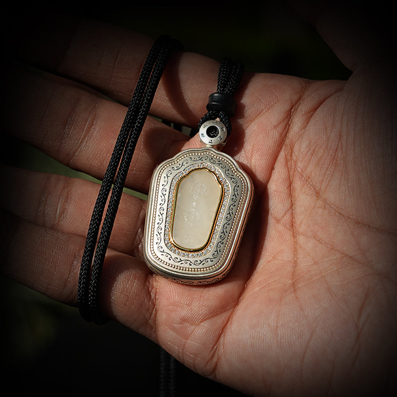 The six-syllable Great Compassion Mantra represents the wisdom and compassion of the Bodhisattva, purifying the mind, eliminating worries, and bringing peace and good fortune to the wearer.