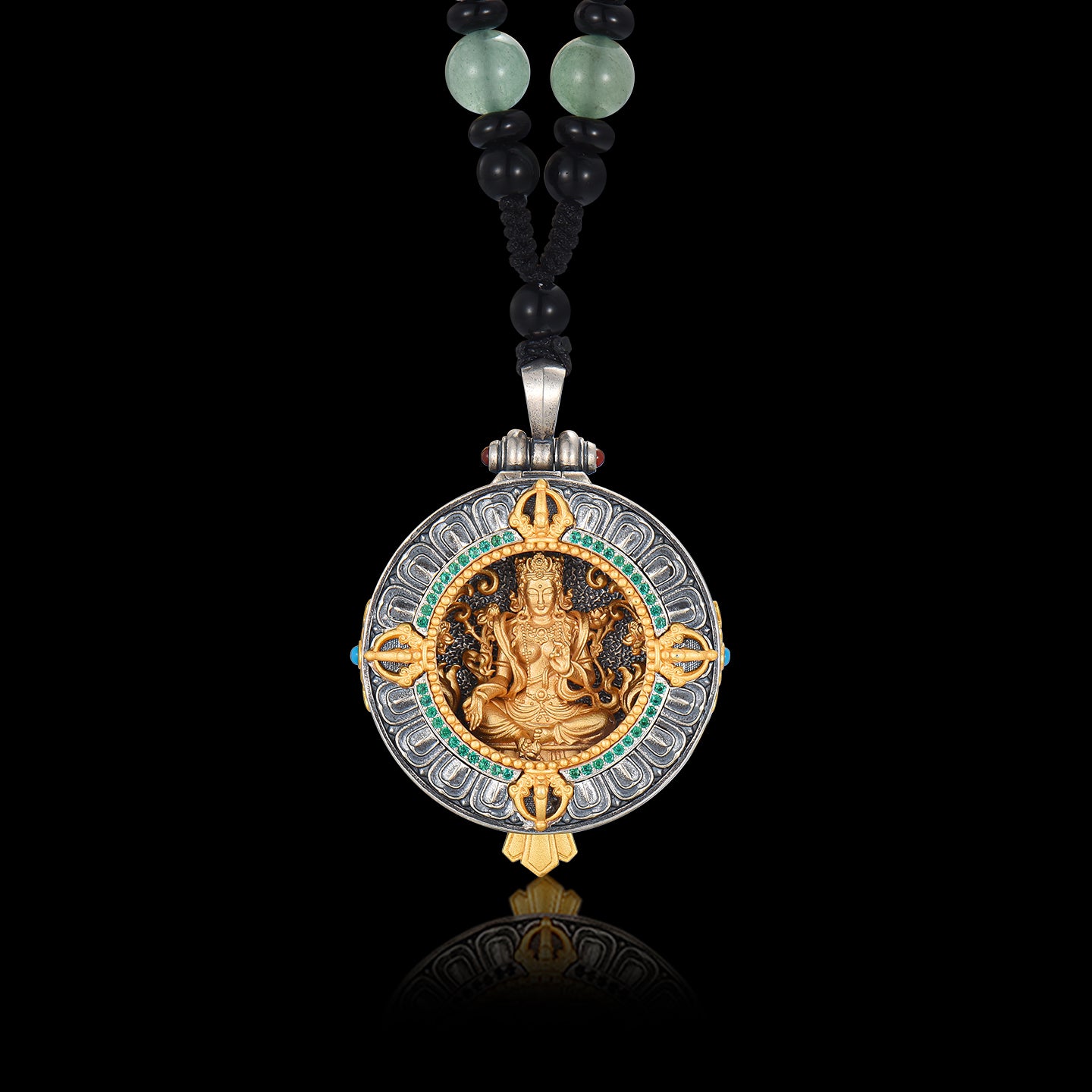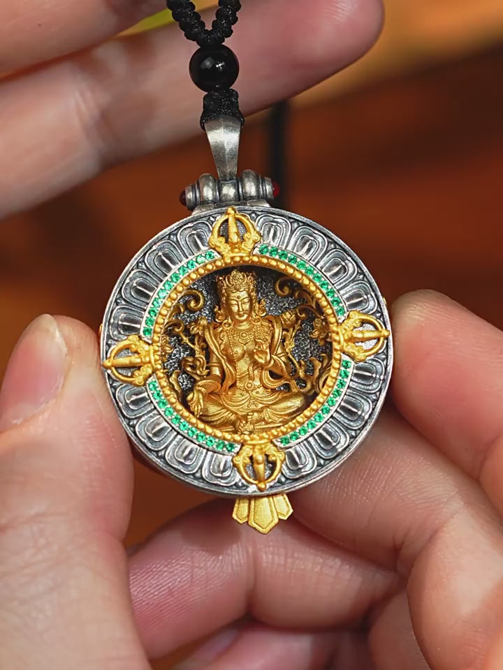 Green Tara Tibetan sterling silver Gawu box pendant