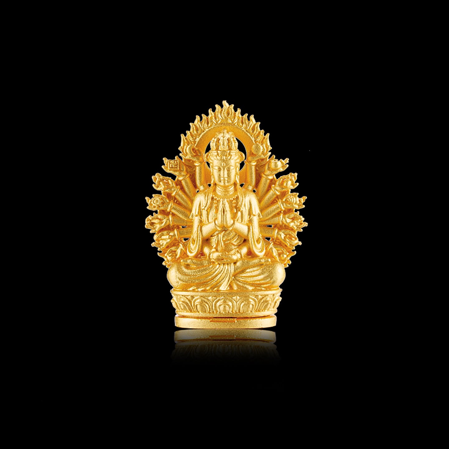 千手觀音信仰是漢傳佛教最深入民間的菩薩形象之一,其 「大悲咒」 廣為流誦。作為 「生肖本命佛」(常與特定生肖如鼠相連),體現了佛教普門救度思想與傳統生肖守護的融合。供奉或佩戴千手觀音,不僅是尋求現世平安、消災、滿願的庇護,更深含 「效法菩薩大悲、生起利他之心、轉化煩惱為菩提」 的修行本懷,是連接眾生疾苦與佛法無邊慈悲力的重要精神象徵,承載著對世間一切美好安樂的深切祈願。