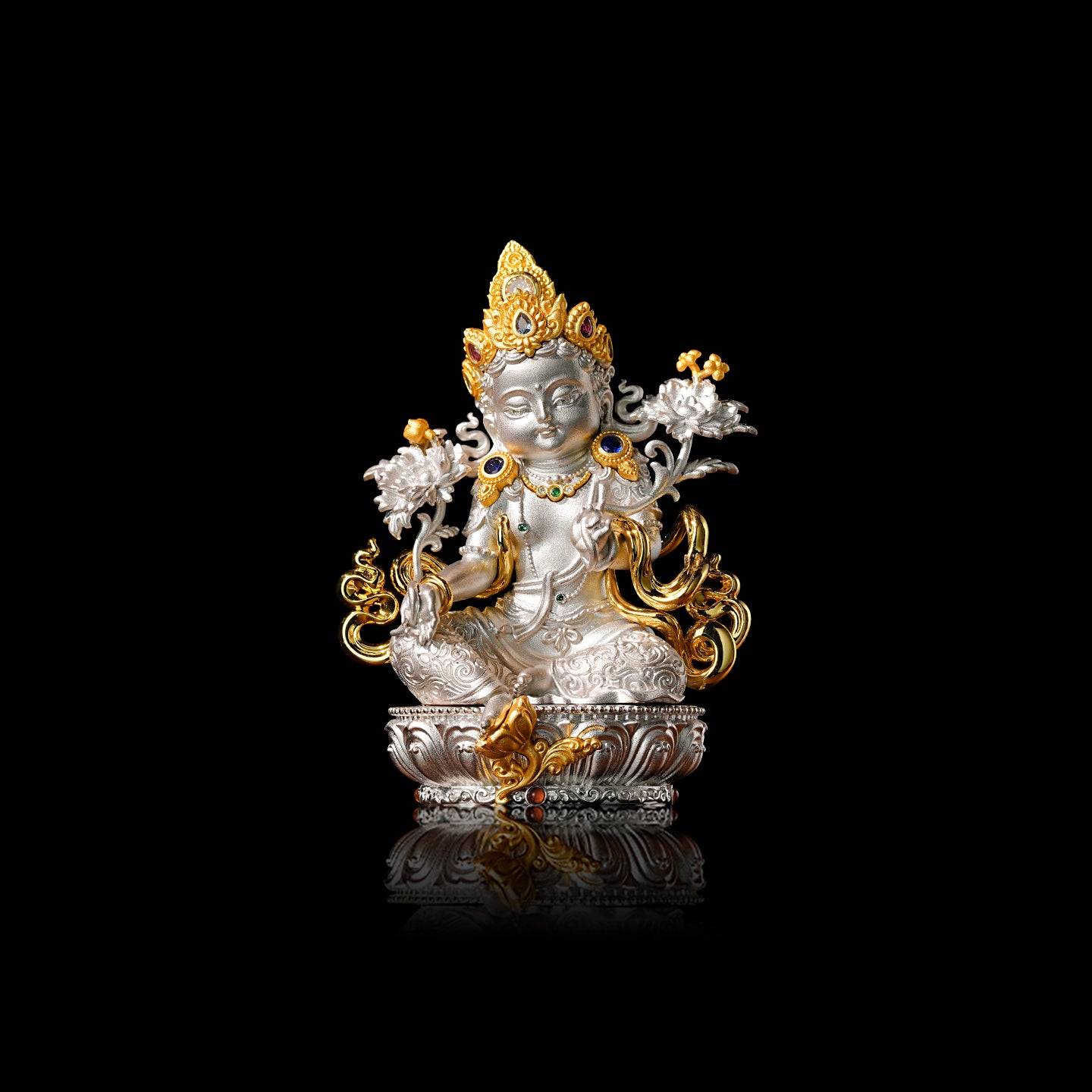 传统新生:严格复刻藏传造像仪轨(莲花座、法手印、璎珞纹路 ),用鎏金、嵌宝工艺还原度母法相,让千年信仰以现代工艺 “复活”;
