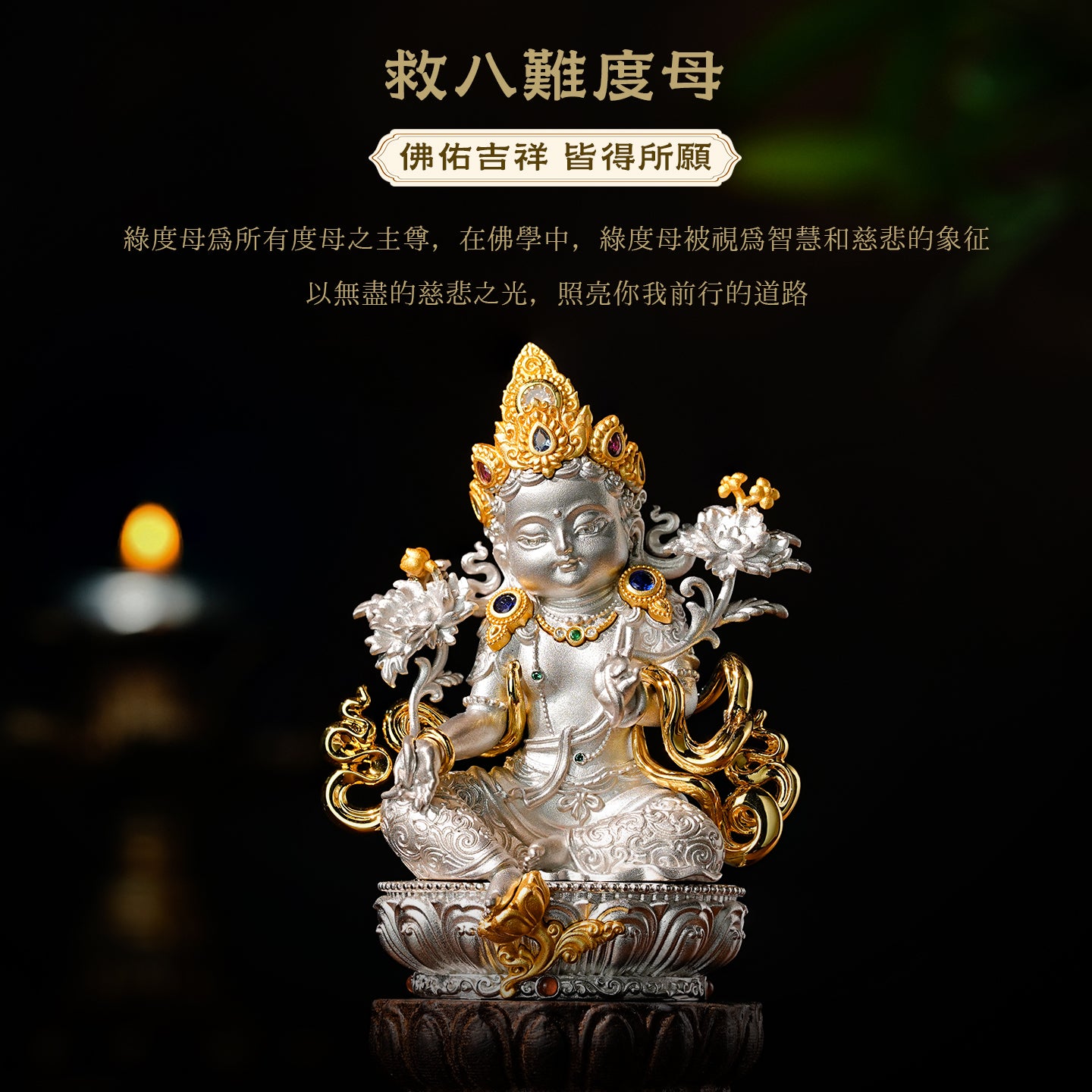 藏式绿度母造像,串联起藏传佛教的慈悲哲学与手工传承 。从鎏金的庄严到法相的慈悲,既延续 “救八难” 的信仰内核,又以现代工艺诠释传统美学,让古老的护佑精神,在当下找到新的表达与共鸣 。
