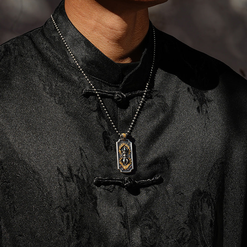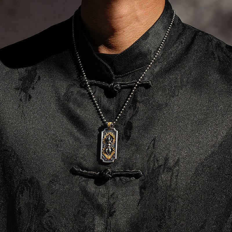 此作承襲藏傳佛教法器基因,將宗教聖物轉譯為當代生活禪具。金剛杵在密宗儀軌中代表「菩提心不可摧」,我們以極簡金屬線條重構傳統符號,使千年靈性智慧融入日常配飾,讓每一次指尖觸碰,都是與東方禪意的對話修行。