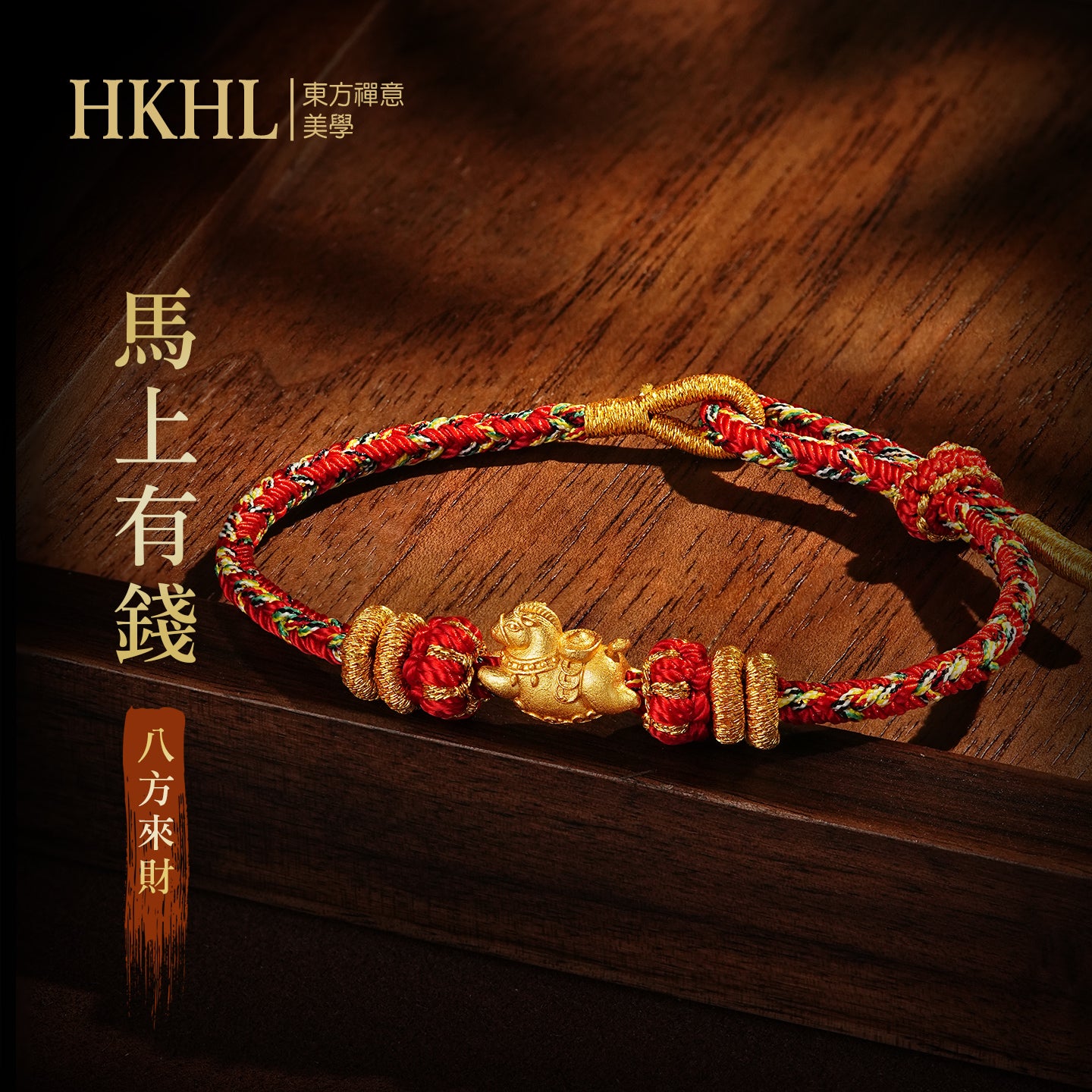 選擇打造這款馬年本命年手繩,是因「馬」對應馬年生肖,紅繩是傳統本命年的祈福符號,二者結合既契合生肖屬性,又承載「馬上有錢」的財運吉兆;手繩以多色編織紅繩為基底,搭配立體金質駿馬與金飾配件,既保留了紅繩的民俗祈福屬性,又通過精緻工藝提升時尚感,使其成為馬年本命年專屬的腕間吉物,兼具文化寓意與裝飾價值。