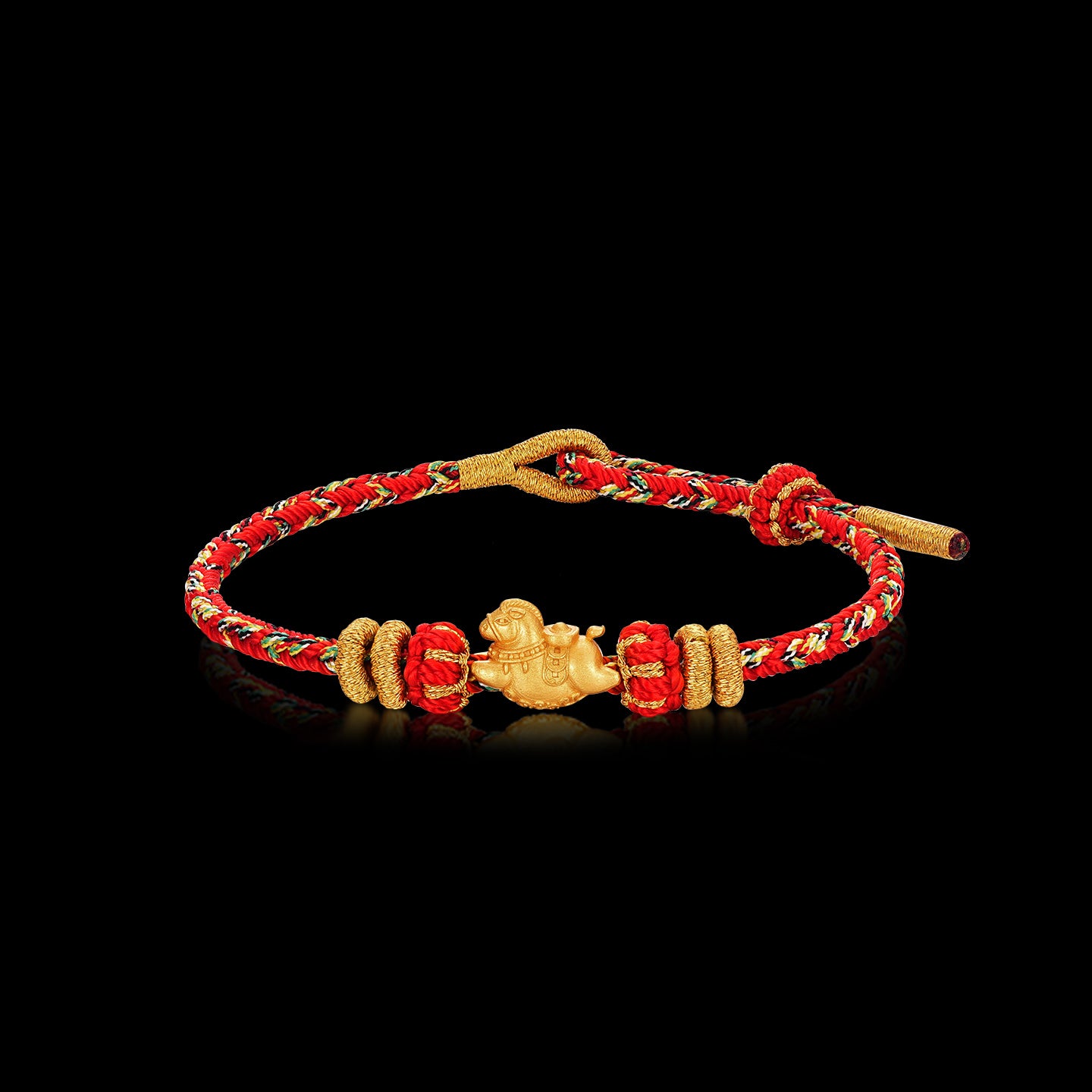 嵌入立體金質駿馬飾件,搭配金飾紋理點綴,強化「馬上有錢」的吉讖形象,讓手繩既具民俗溫情,又顯精緻質感。