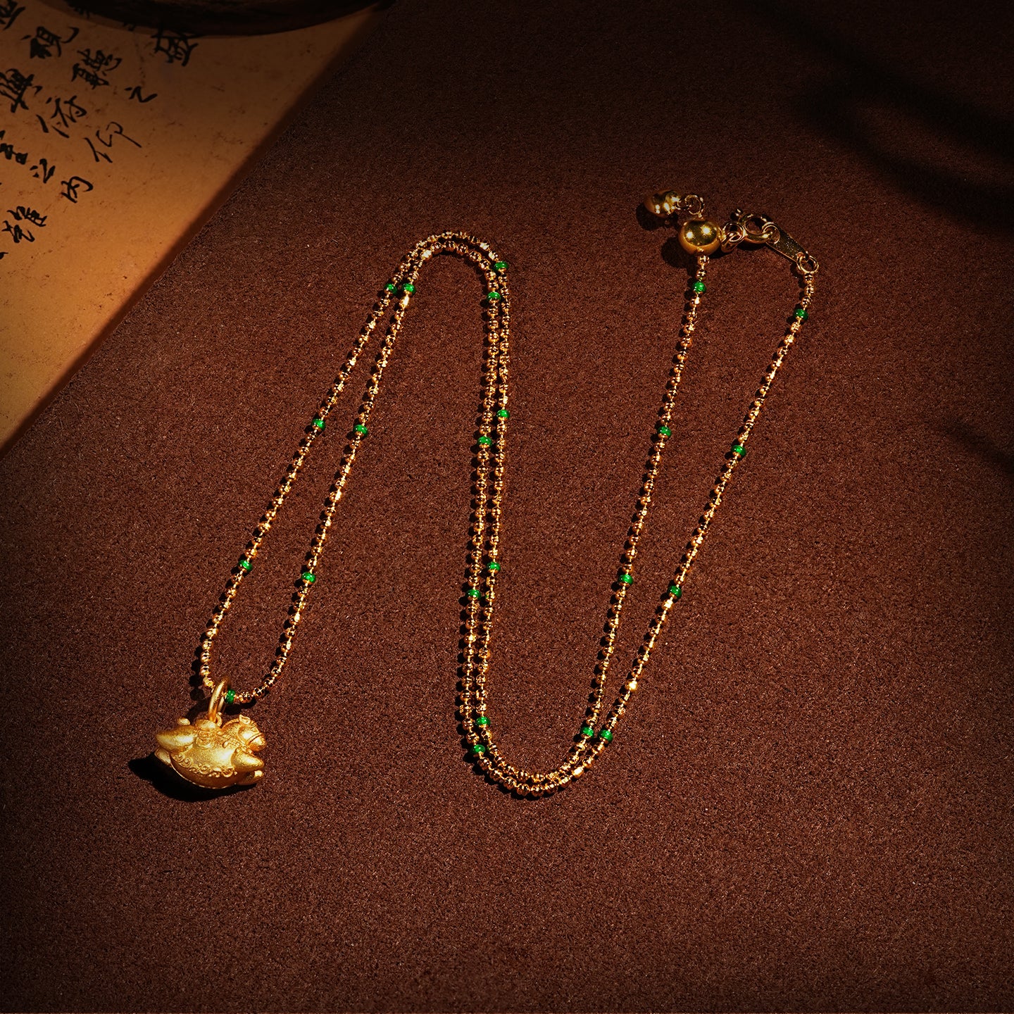 搭配金質鏈條與綠玉髓點綴細節,平衡傳統民俗與現代飾品的審美,讓馬年本命年佩戴者既能感受祈福寓意,又能展現時尚品味。