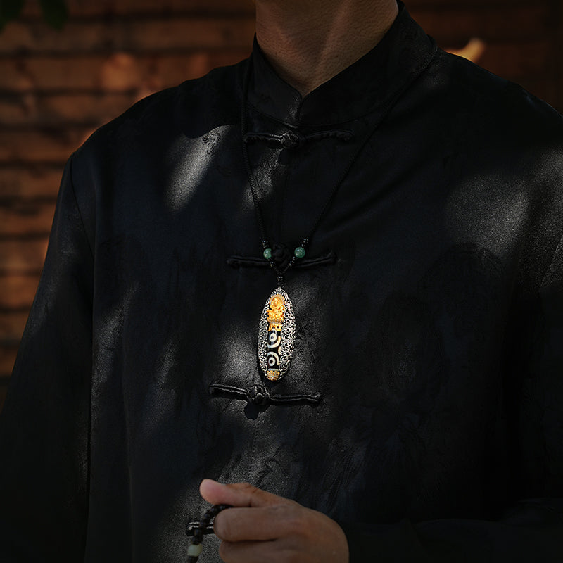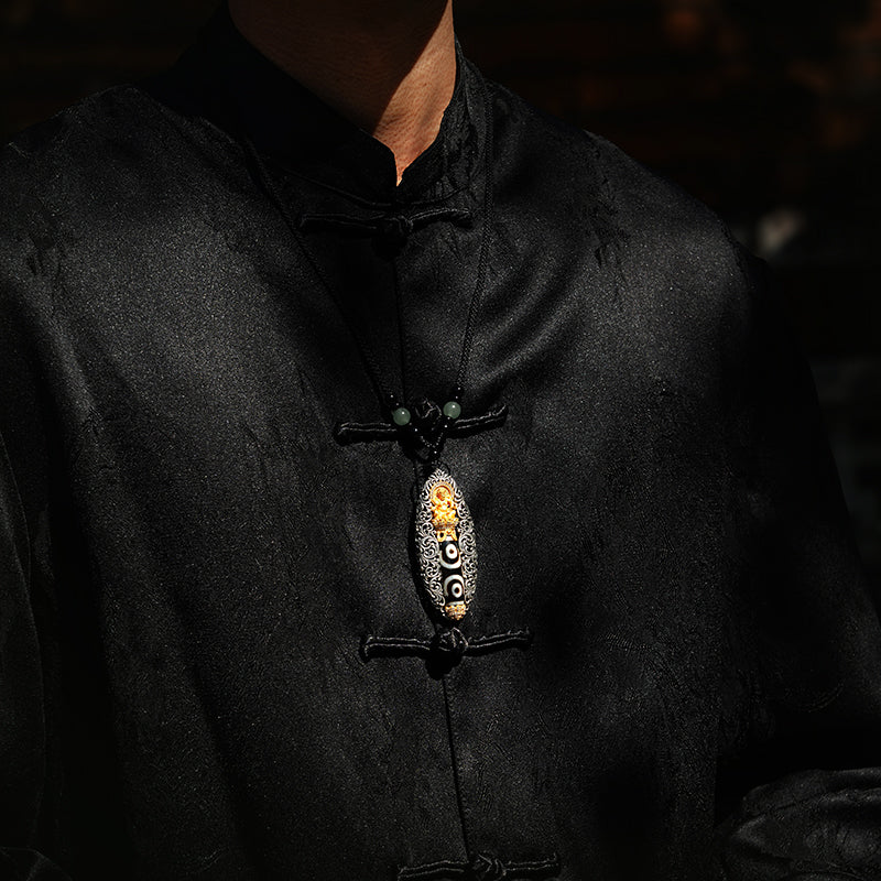 黃財神信仰深植藏傳佛教「即身成佛」體系,其金身與吐寶鼬形象承載密宗「財富即能量」的哲學——財富需以智慧駕馭、慈悲流通,方能轉為解脫資糧。天珠與財神的結合,更凝聚漢藏共尊的靈性共識。佩戴此尊,是對「智富雙運」生命境界的追求:不以貪執求財,而以智慧生財;不以守財為終,而以布施為樂。