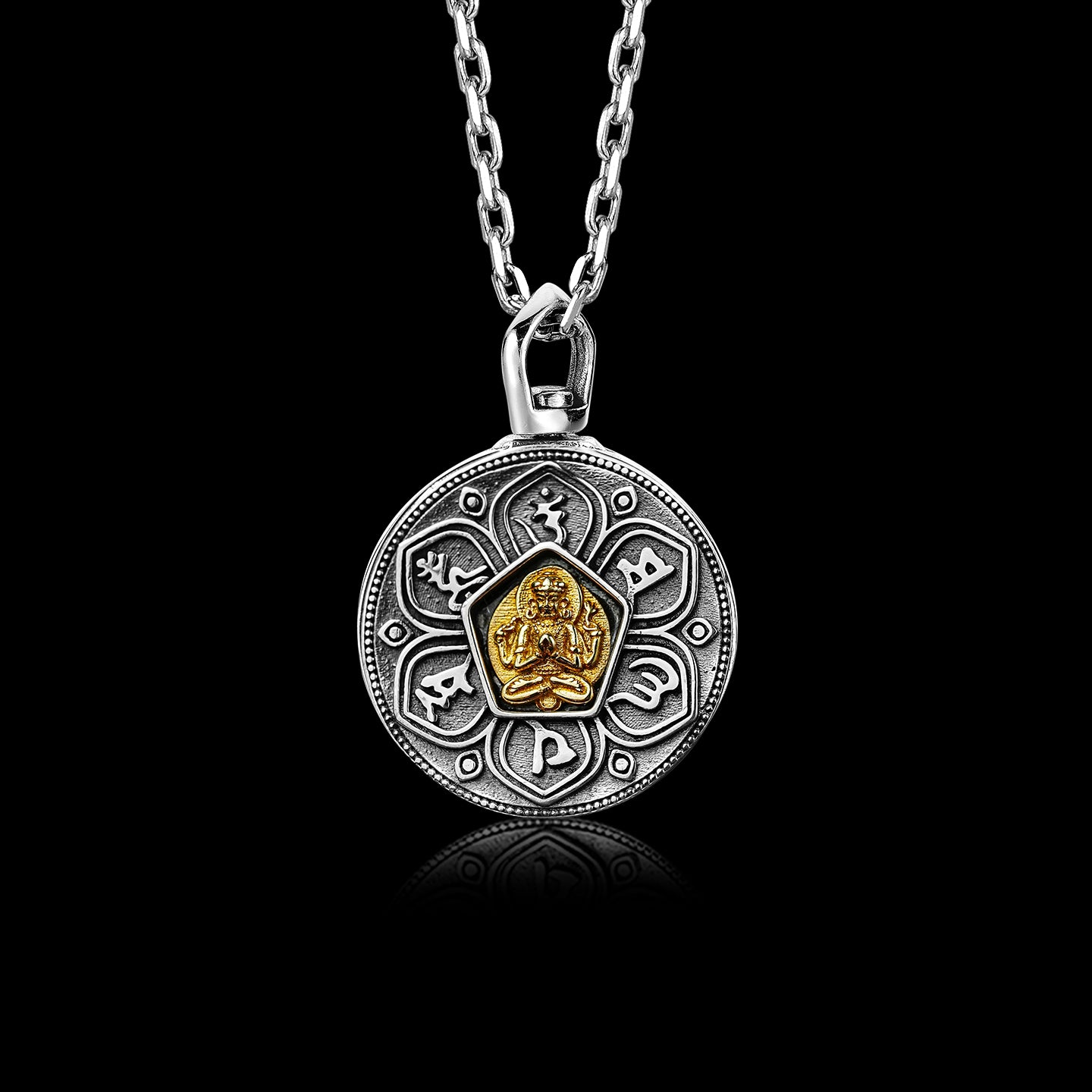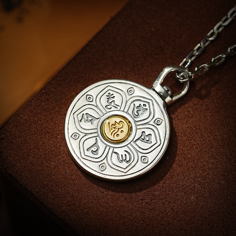มนตราหกพยางค์ถูกเลือกเป็นหัวใจสำคัญของการออกแบบ เพราะในวัฒนธรรมพุทธ มนตรานี้เป็นตัวแทนของภูมิปัญญาและความเมตตา มอบความสบายใจและพลังทางจิตวิญญาณแก่ผู้สวมใส่ จี้สลักบนฐานเงิน ประดับด้วยภาพสลักนูนต่ำรูปมนตราหกพยางค์และพระพุทธเจ้า จี้นี้ยังคงรักษาความเคร่งขรึมและน้ำหนักของวัฒนธรรมทางศาสนาไว้ ขณะเดียวกันก็ยังคงรูปทรงทรงกลมเรียบง่ายที่เหมาะสำหรับสวมใส่ในชีวิตประจำวัน ด้วยการเปลี่ยนมนตราหกพยางค์ที่เปี่ยมด้วยปัญญาอันลึกซึ้ง ให้กลายเป็นเครื่องประดับพกพา ความปรารถนาใน "โชคลาภและสันติสุข" จึงไม่ใช่เพียงความปรารถนาอันเลื่อนลอยอีกต่อไป แต่เป็น "เครื่องรางทางจิตวิญญาณ" ที่จับต้องได้ สื่อถึงความอบอุ่นทางวัฒนธรรมและพลังบวก เติมเต็มความต้องการทั้งในด้านความยั่งยืนและความปรารถนาทางจิตวิญญาณ