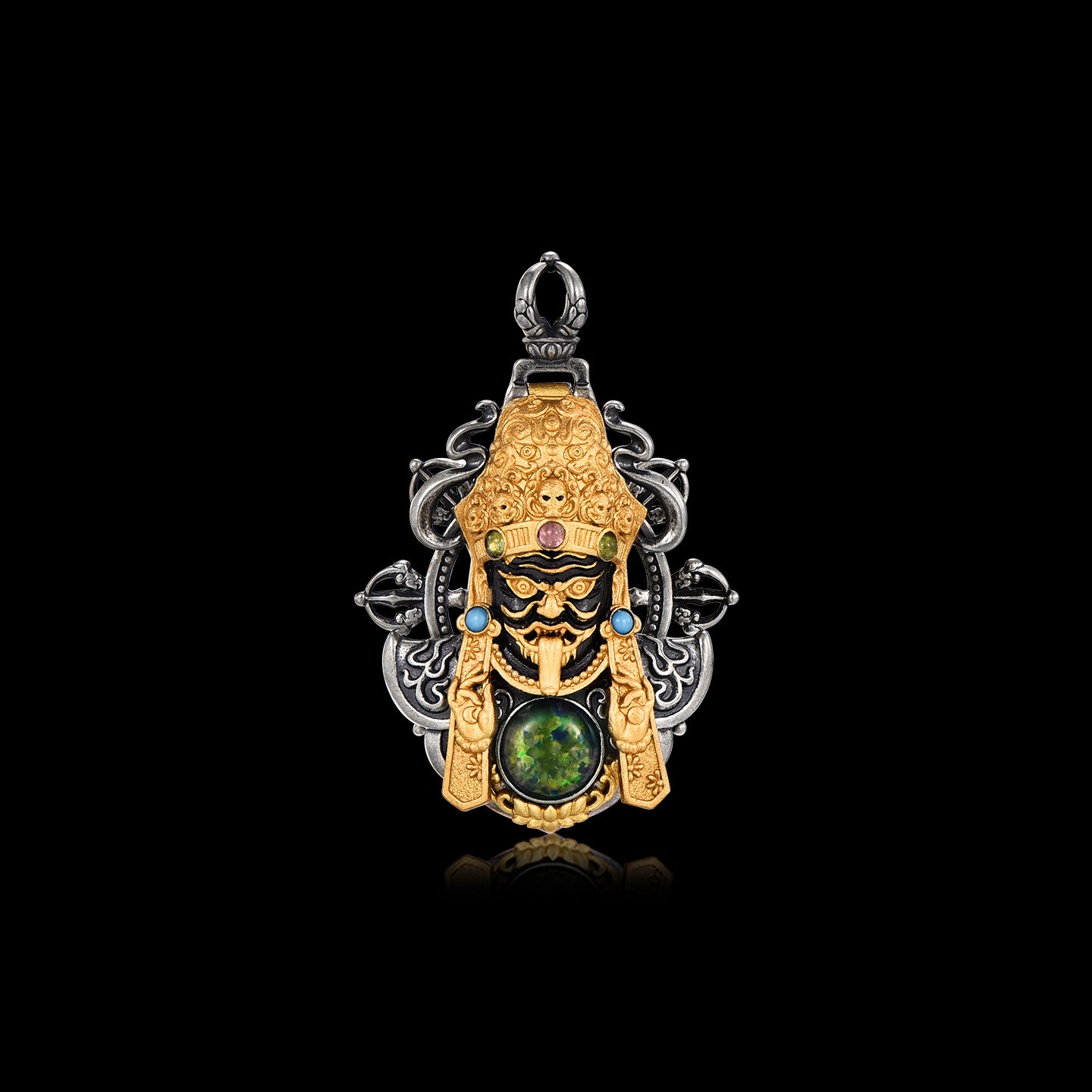 จาจีราม เทพผู้พิทักษ์หญิงผู้มีเอกลักษณ์เฉพาะในศาสนาพุทธแบบทิเบต หรือที่รู้จักกันในนามเทพีแห่งโชคลาภ เป็นที่เคารพนับถืออย่างกว้างขวางในทิเบต ตามตำนานเล่าว่า พระองค์มีพลังคุ้มครองอันทรงพลัง คุ้มครองความมั่งคั่งและโชคลาภของเหล่าสาวก ช่วยขจัดอุปสรรคในหน้าที่การงานและรวบรวมทรัพย์สมบัติ จี้นี้ได้รับแรงบันดาลใจจากภาพลักษณ์อันเป็นเอกลักษณ์ของจาจีราม ผสมผสานกับการออกแบบทางวัฒนธรรมและความคิดสร้างสรรค์ที่ทันสมัย พลิกโฉมเรื่องราวการปกป้องคุ้มครองแบบทิเบตดั้งเดิมให้กลายเป็นสัญลักษณ์ทางวัฒนธรรมที่สวมใส่ได้ นำความเชื่อโบราณนี้มาประยุกต์ใช้ในชีวิตประจำวัน