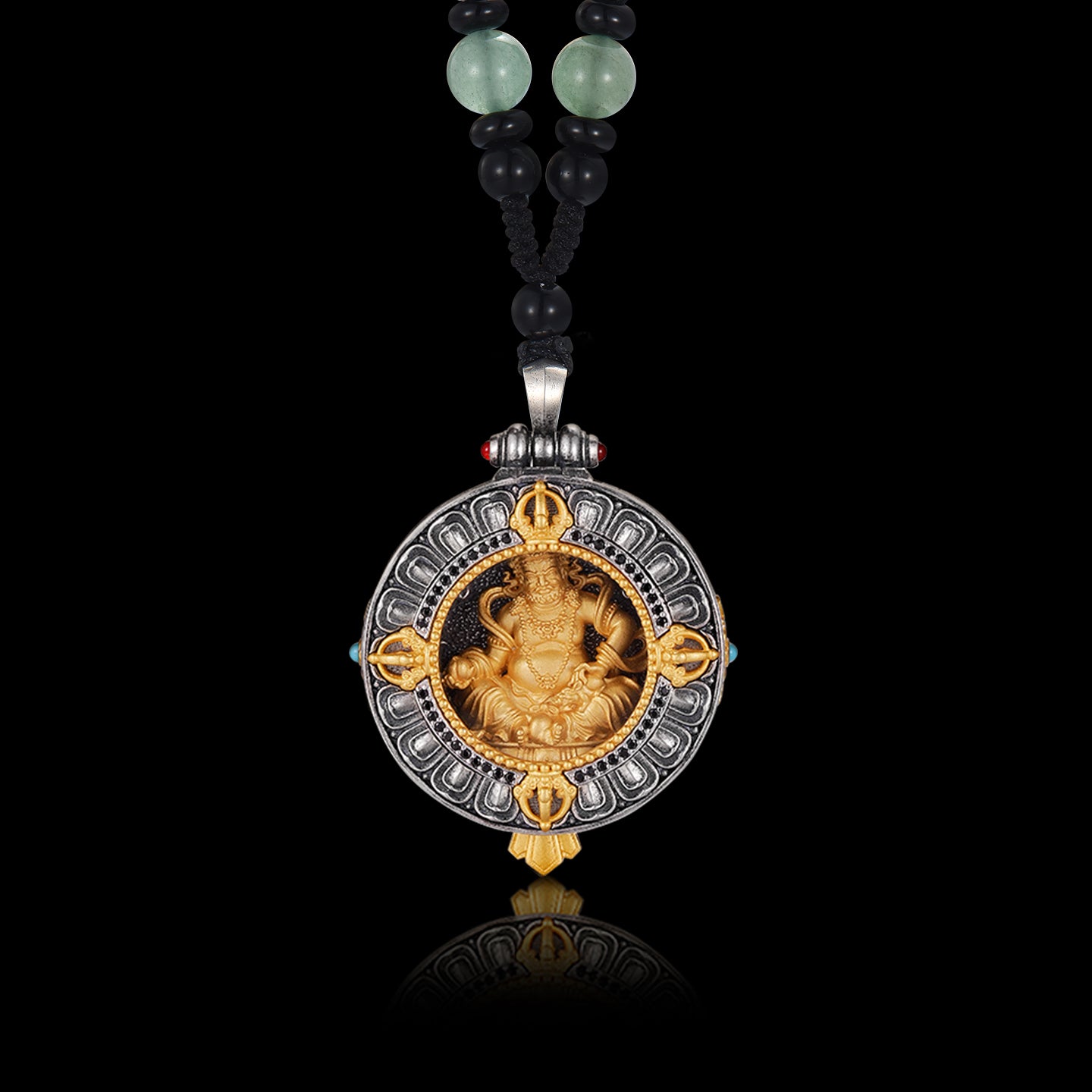 เทพจัมบาลาสีเหลืองมีรากฐานที่หยั่งรากลึกในพุทธศาสนาแบบทิเบต พระองค์ทรงเป็นเทพผู้ประทานความมั่งคั่งทางโลกและสั่งสมบุญบารมี รูปลักษณ์สีทองอร่ามและหนูพ่นสมบัติของพระองค์เป็นสัญลักษณ์ของความอุดมสมบูรณ์อันไร้ขอบเขตและการเติมเต็มความปรารถนาทั้งปวง การบูชาจัมบาลาสีเหลืองไม่เพียงแต่เป็นการสวดภาวนาขอความเจริญรุ่งเรืองทางวัตถุเท่านั้น แต่ยังมีความหมายลึกซึ้งยิ่งกว่า เปรียบเสมือนการเลียนแบบความเอื้อเฟื้อเผื่อแผ่และจิตวิญญาณของพระองค์ ใช้ความมั่งคั่งเป็นเครื่องมือในการทำความดี และเป็นประโยชน์ต่อทั้งตนเองและผู้อื่น "กล่องกาวู" ศาลเจ้าเคลื่อนที่ที่ชาวทิเบตถือ สะท้อนถึงประเพณีอันน่าเคารพนับถือในการเชื่อมต่อกับธรรมะอย่างต่อเนื่องและได้รับการปกป้องคุ้มครองจากองค์เทพ การสวมกล่องกาวูเป็นการอัญเชิญพรพิเศษจากองค์ประมุขแห่งเทพเจ้าแห่งความมั่งคั่งทั้งห้า สะท้อนถึงความปรารถนาอันสมหวังใน "พรจากพระพุทธเจ้า ความมั่งคั่งจากทุกทิศทุกทาง และพรและปัญญาอันเพิ่มพูน" มันคือการรวมเอาหลักธรรมทางพุทธศาสนาแบบทิเบตอันลึกซึ้งในการผสานความต้องการทางโลกเข้ากับปัญญาอันสูงส่งได้อย่างลงตัว